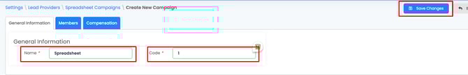 8. Then enter a Name and Code for the campaign, then click Save Changes.